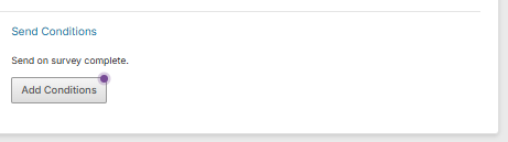 This will open a dialogue essentially identical to that for Display Logic. Choose any combination of metadata and answers to questions to set the conditions under which the email will send. if the conditions are not met, then the email will not send.